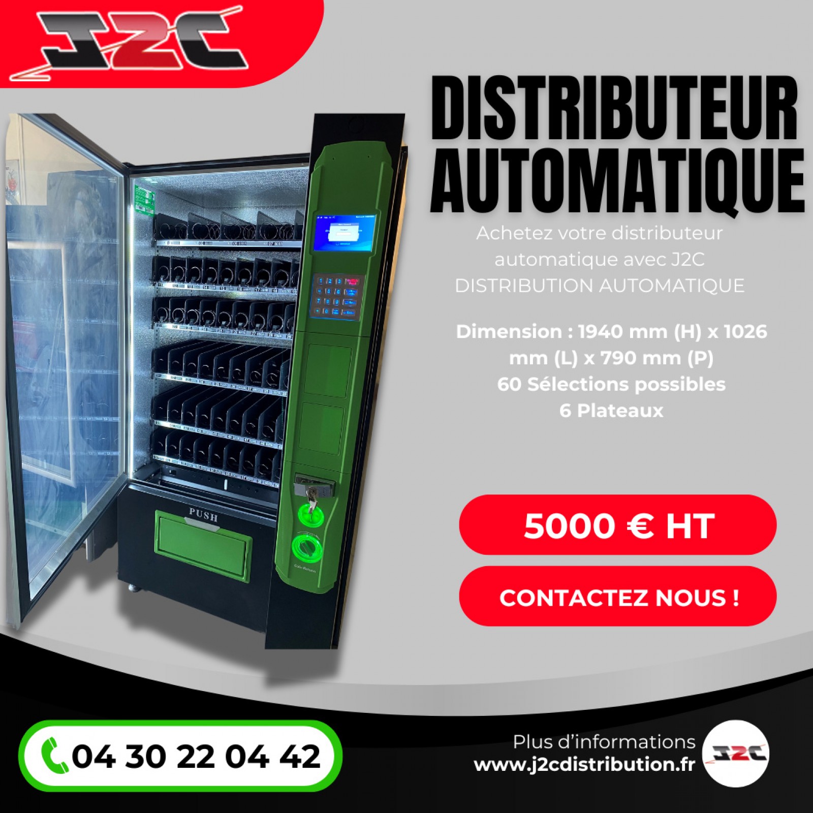 La société J2C Distribution automatique vous propose à la vente cet élégant distributeur automatique de boissons fraiches et petites confiserie.